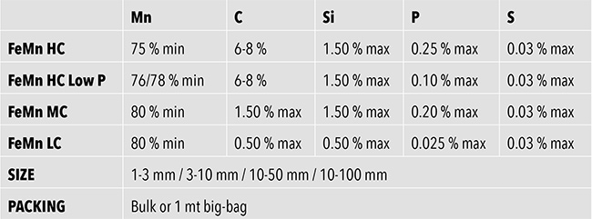 lts mainly applicable as a desulfurizer, deoxidizer and the most prevalent alloying agent after Carbon. Our range covers Standard ferromanganese, Medium-carbon and Low-carbon ferromanganese both in lump and powder shape.