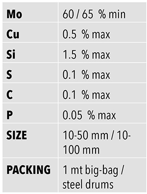 Ferromolybdenum is a harden-ability agent and is a constituent of many heat treatable alloy steels and improves the corrosion resistance of stainless steels. Ferro Molybdenum could be tailored both in Lump and Powder forms for different applications.
